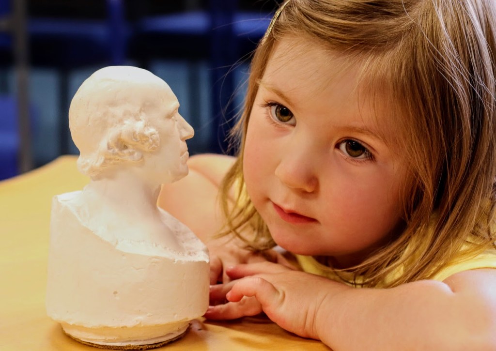 Little Bethany Stevens (aged nearly 3) of Bo’ness checks out the bust of inventor James Watt on show at Bo’ness Library. It’s a part of an exhibition about the Scottish engineer – who came to the town to do early work to improve the steam engine. Watt’s cottage workshop still stands within Kinneil Estate.